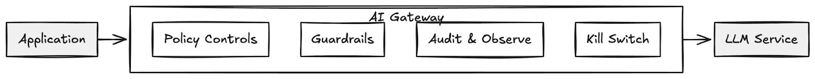 Establishing an intermediary that acts as an out-of-application way to observe, audit, and control these interactions is crucial. This can be done with a piece of middleware like an API gateway or a more dedicated AI gateway. These AI gateways can implement security, WAF (IP-based controls), and further apply policy around what LLMs can be used, securing their connections, and most importantly, placing a second line of defense for guardrails. These guardrails can inspect the request and do an analysis to determine whether or not they should be allowed (or conversely, inspect a response from an LLM and determine whether it should be allowed).